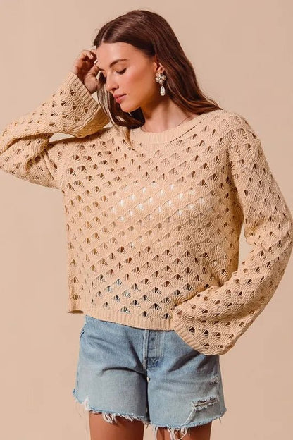 SO ME Geometric Pattern Open Knit Lightweight Sweater