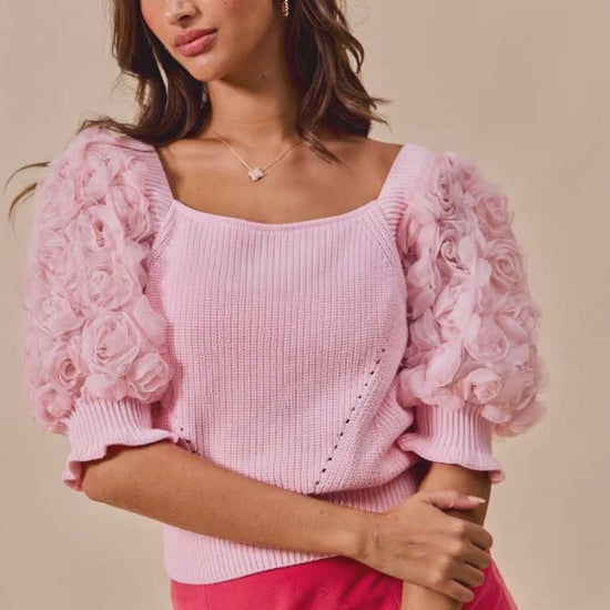 SO ME Rosette Sleeves Square Neck Sweater Knit Top